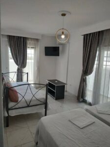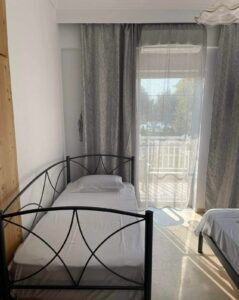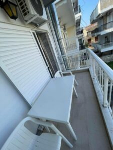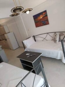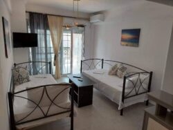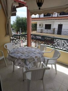 Вила Хрисанти се наоѓа на 50м.од плажа. Дуплексот е наменет за престој на 4 лица.Структурата на дуплексот е со две соби.Во една соба има брачен кревет,во другата има два единечни стандардни кревети.Бања,кујна која е опремена за приготвување на лесна храна и тераса која има директен поглед на морето и шеталиштето.