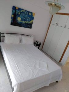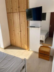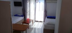 Апартманот е наменет за 4 лица и се наоѓа на 50м. од плажа.Во едната соба има брачен кревет,а во дневната соба која е поврзан со кујната има два единечни кревета.Бања,тераса и кујна која е целосно опремена за приготвување на лесна храна.