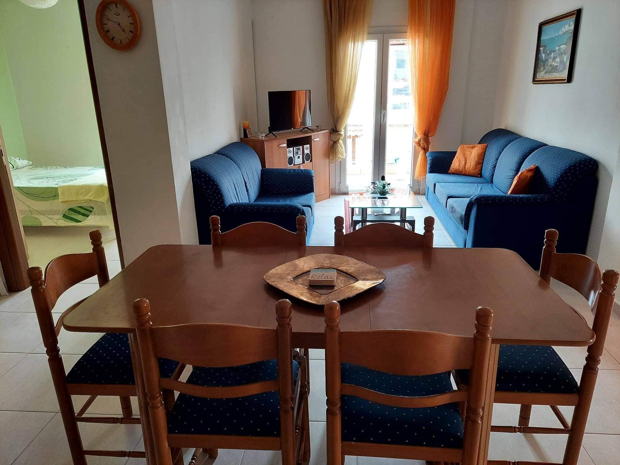 АПАРТМАН РЕЛАКС – ФЛОГИТА е наменет за 5-6 лица .. Се наоѓа на прв кат со страничен поглед на море и на 250 метри од плажа. Се состои од две спални соби, дневна поврзана со кујна, бања, тоалет и прекрасна тераса. Во двете соби има брачен кревет. Во дневната соба, тросед каде што може да се извлече,се прави лежај. Кујната е опремена за подготвување и послужување храна и пијалоци. Има прекрасна тераса со поглед на море, до која се пристапува и од спални и од дневна соба. Има и мала тераса од бањата.