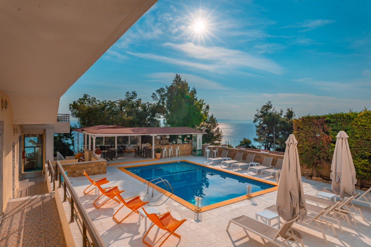 Надворешен базен (бесплатно), бар покрај базен, рецепција 24 / 7, игротека за деца