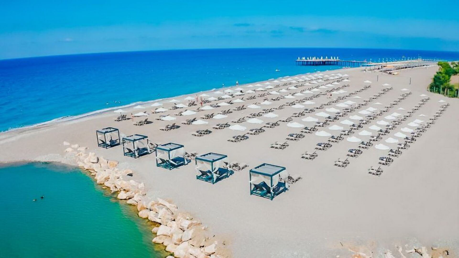 Локација Хотелот се наоѓа во областа Кизилот, на 100 км од аеродромот во Анталија.- Сместување Вкупно 430 соби во една главна зграда. Еко соби (31 м², една спална соба со дупли кревет и софа, купатило, соби само со поглед на копно), Стандардни соби (31 м², спална со дупли кревет и единечен кревет, купатило, макс. 2+1 лице), Сениор соби (37 м², спална сo дупли кревет, купатило, макс. 2 лица). Сите соби се со балкон, приватно купатило со туш, када и фен, бањарки, влечки, клима која работи според временските услови, телефон, мини бар (вода, безалкохолни пијалоци и пиво се дополнуваат секој ден), бокал, сет за чај и кафе, сеф, ламинатен под сателитска тв и музички каналки, WI-FI, балкон. Услуга Ултра Сѐ вклучено шведска маса за појадок, доцен појадок, утринска ужинка, ручек, попладневна ужина, торта, кафе, чај, вечера, полноќна ужина и ран појадок. Сите локални и стандардни увозни алкохолни и безалкохолни пијлоци, храна и пијалоци после 24-00 часот, сладолед во одредено време, мини бар со вода и безалкохолни пијалоци се дополнува секој ден, диететска и детска храна само во главниот ресторан. Не е вклучено: увозни алкохолни и безалкохолни пијалоци кои не се на менито, сите флаширани пијалоци, енергетски пијалоци, свежо цедени сокови, специјални вина, услуга во соба, À la Carte ресторани со претходна резервација и доплата. Содржини Главен ресторан со шведска маса, À la Carte ресторани - турски, италијански и рибен ресторан, барови насекаде околу хотелскиот комплекс, диско клуб. Доктор, перење, шопинг центар, изнајмување кола, WI-FI бесплатно. Плажа Хотелска приватна плажа со песок и камчиња. Крпи, лежалки и чадори се бесплатни. Спорт и забава Внатрешен и надворешен базен, базен за деца, слајдови на вода, фитнес центар, сауна, турска бања, парна соба, пинг понг, одбојка на плажа. Со доплата: масажа, велнес центар, билијард и соба за игри, спортови на вода. Забавни програми, натпревари, шоу програми навечер, мини клуб за деца. Забелешка: поради новите мерки за заштита од Ковид-19, хотелот го задржува правото за промена на некои содржини без претходна најава.