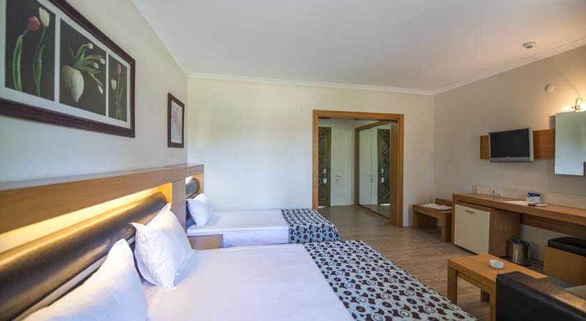 Сите соби се со купатило со туш кабина и фен, клима сплит систем, телефон, мини бар (вода и сокови, се дополнува секој ден), сеф, сателитска ЛЦД ТВ и музички канали, балкон или тераса, ламинат на подот, Wi-Fi интернет е достапен само во некој од собите до 56Kbps.
