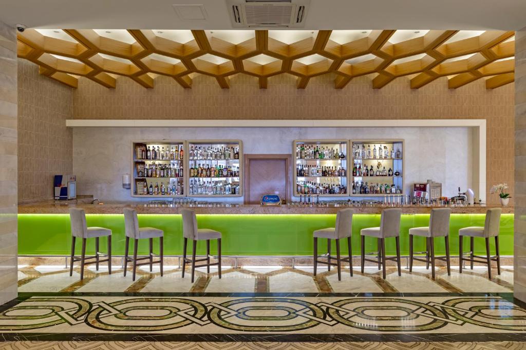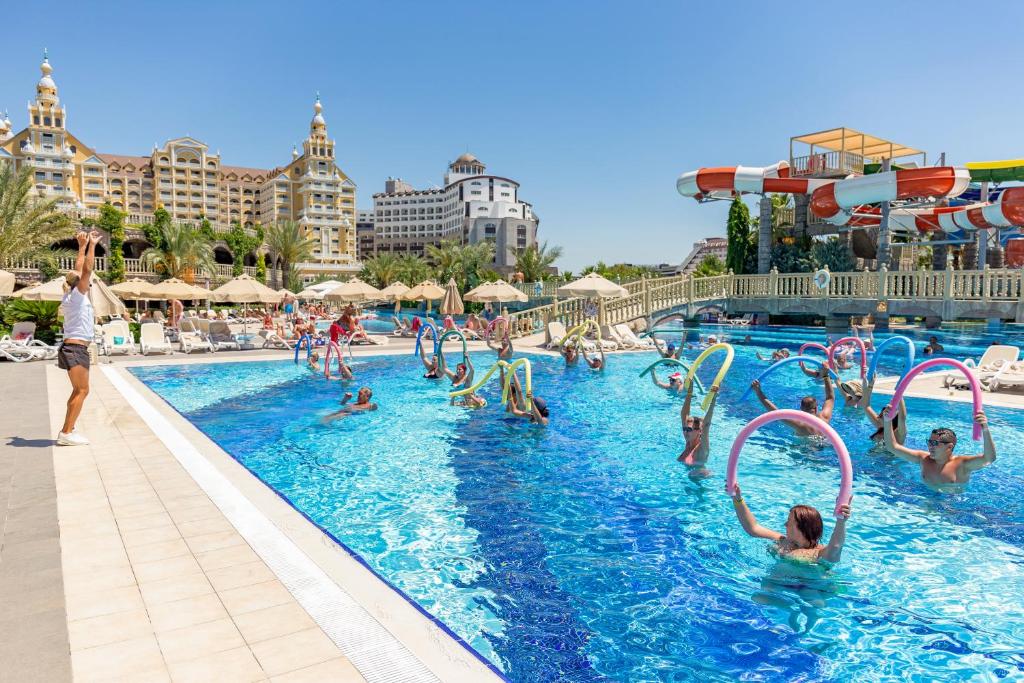 Положба Хотелот се наоѓа во Лара, на 17 км од центарот на Анталија и 15 км од аеродромот во Анталија. Сместување Вкупно 604 соби. Супериор стандардни соби (46 м², една спална со еден француски кревет + еден единечен, купатило, макс. 3+1 дете). Делукс апартмани (85 м², две спални и една дневна одвоена со врата, две купатила (едно е со туш кабина, другото со када, а повеќето се со џакузи, макс. 4 лица). Дуплекс фамилијарни соби (75 м², на приземје, два одвоени кревети и купатило со туш, на спрат - брачен кревет, купатило со када, нема врата како галерија, макс. 4 лица). Јуниор апартмани (60 м², дневна и спална соба, купатило со када, макс. 2+1 дете). Конектирани фамилијарни соби (60 м², две спални одвоени со врата, едно купатило, макс. 4 лица). Делукс апартмани (85 м², две посебни спални и една дневна соба одвоени со врата, две купатила, повеќето од овие соби се со џакузи, макс. 4 лица). Кралски апартман (180 м², на горниот кат спална за родители и купатило со џакузи, доле спална за деца, купатило со туш, дневна и мала кујна, макс. 4 лица) 6 соби за лица со попреченост. Собите се со купатило со када и туш, фен, централен клима систем кој работи според временските услови, телефон, мини бар (вода, безалкохолни пијалоци и пиво се дополнува секој ден), електричен бокал, сет за кафе и чај, сеф, сателитска ТВ и музички канали, WI-FI интернет, тепих на подот, балкон и сите соби се за непушачи. Услуга Ултра Сѐ вклучено – шведска маса за појадок, доцен појадок, ручек, вечера, ноќни ужини, храна за деца, диететска храна, ужина и рестораните на плажа во текот на денот, локални и стандардни алкохолни и безалкохолни пијалоци, слатки, сладолед во текот на денот. Луксузните увозни пијалоци, увозен шампањ, свежо цедените и сокови од зеленчук, специјалните вина, услуга во соба, домашни и увозни фалширани вина и À la Сarte ресторани со претходна резервација се наплатуваат. Содржини Главен ресторан со шведска маса, À la Carte ресторани - Ottoman - турски, Verona -италијански, Asia - азиски, мексикански и рибен ресторани, BBQ ресторан, барови низ хотелскиот комплекс. Доктор, чување деца, телефон, факс, интернет и компјутерски игри, продавници, изнајмување кола дополнително се наплаќаат. Бесплатен интернет до 1GB. Плажа Хотелска плажа со песок и ситни камчиња. Лежалки, чадори за сонце и крпи за на плажа се бесплатни. Павилјоните на плажа се со претходна резервација и со доплата. Спорт и забава Надворешени и внатрешни базени (затворен во летната сезона) за возрасни и деца, аква парк со 8 лизгалки, фитнес центар, турска бања, сауна, парна бања, тениски игралишта, одбојка на плажа, кошарка, пинг понг. Спортови на вода, осветлување на тениските игралишта, куглање, билјард, Спа и Велнес центар, салон за убавина, масажа дополнително се наплатуваат. Забавни програми преку целиот ден, натпревари покрај базен и на плажа, вечерни шоу програми, жива музика неколку пати во неделата. Мини клуб за деца со специјална програма и забавен парк за деца (не е дозволен за деца до 7 години).