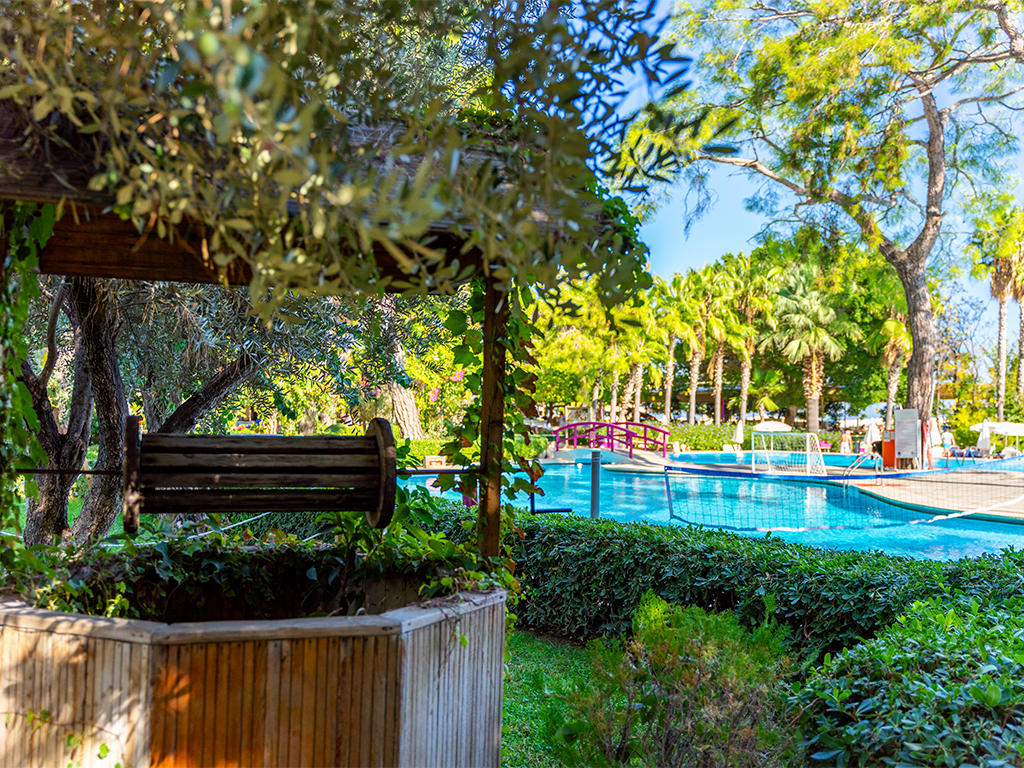 Надворешни базени за возрасни и деца, четири тобогани, фитнес центар, турска бања, сауна, тениски терени, одбојка на плажа, пинг-понг, гимнастика.