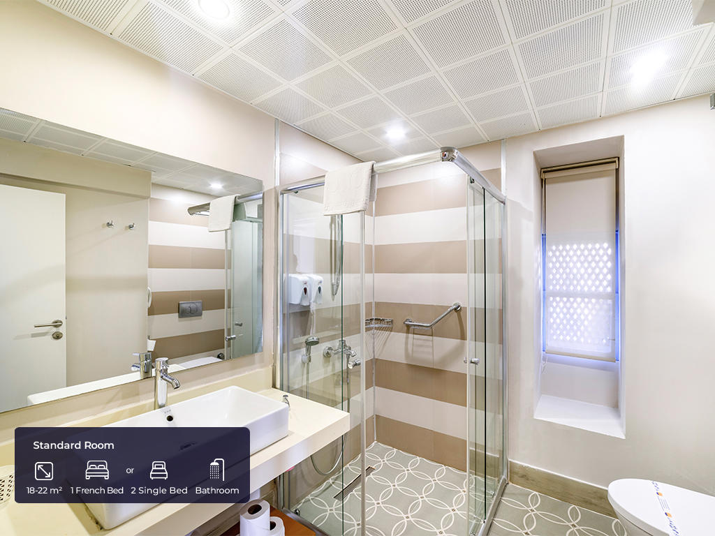 Стандардни соби (18-22 m², една спална соба, едно купатило, макс.2+1 лица).