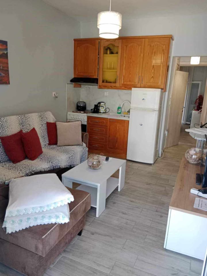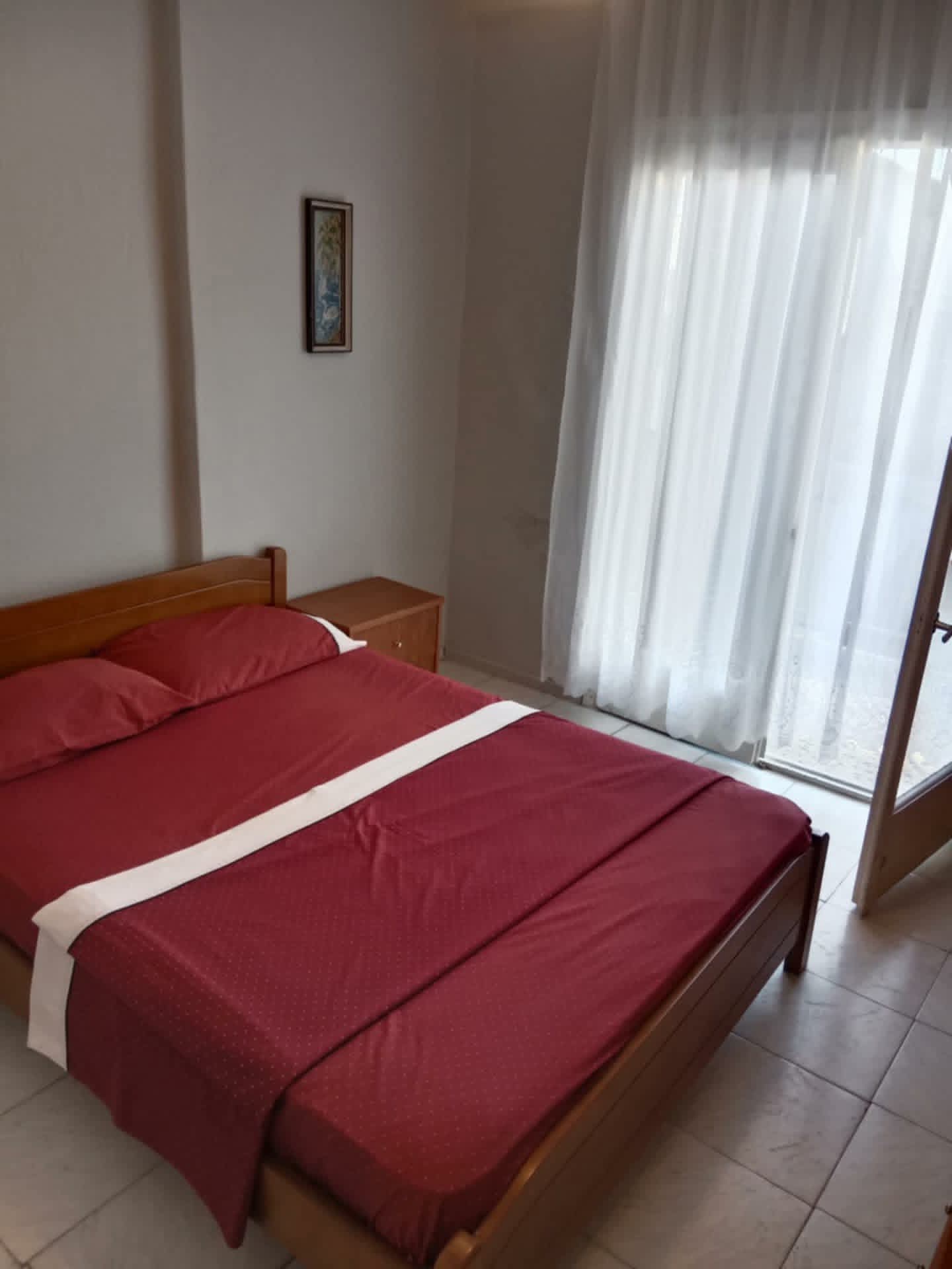 Апартман бр.1 во Неа Плагија. За 4 лица. 80 метри од плажата. Имате еден брачен кревет во едната соба, плус 2 единечни кревети во другата соба. Кујна опремена за подготовка и сервирање храна и пијалоци. Клима уредот и Wifi се вклучени во цената. Апартманот се наоѓа на првиот кат и има 2 тераси. Една напред и една позади.