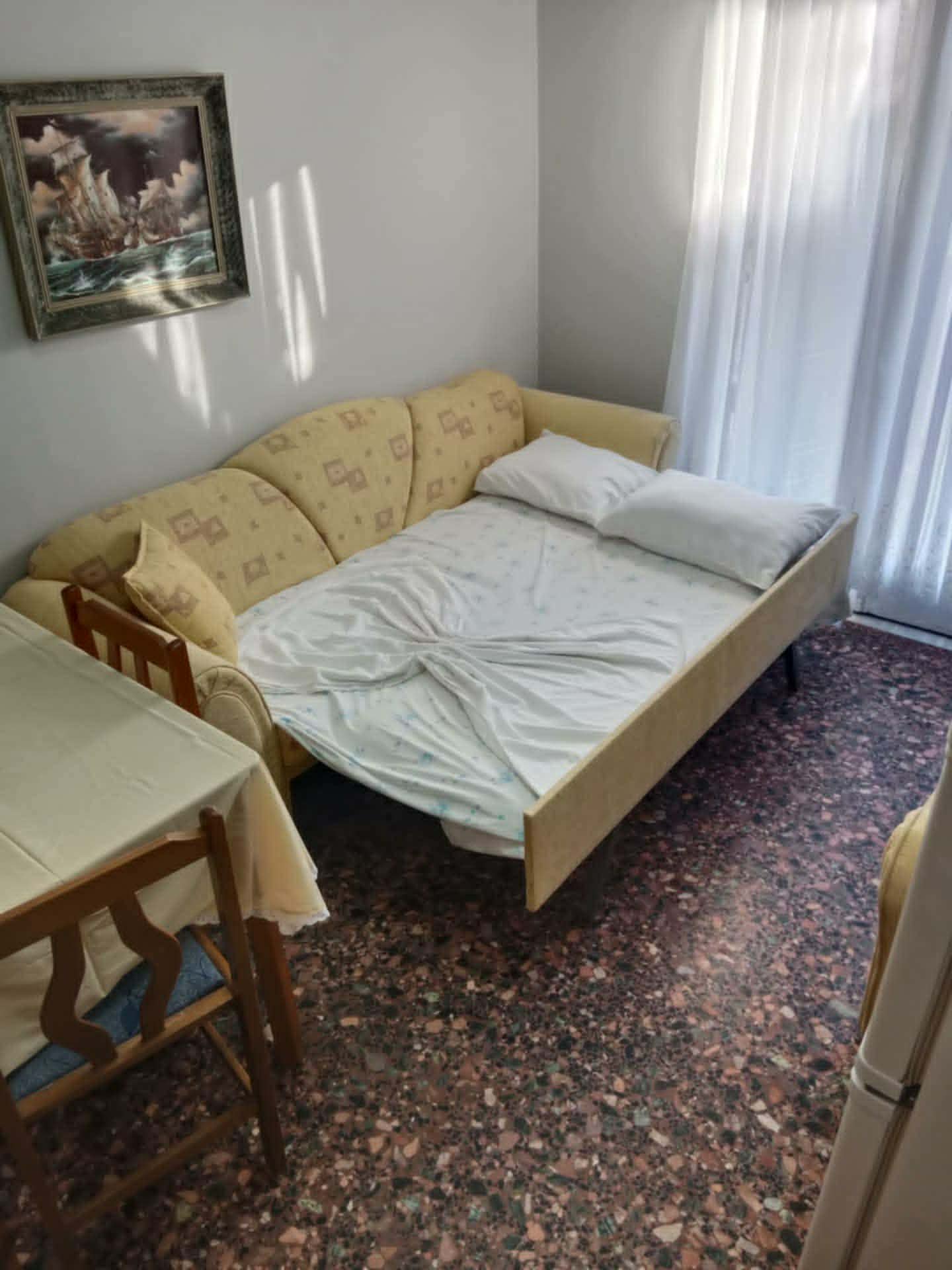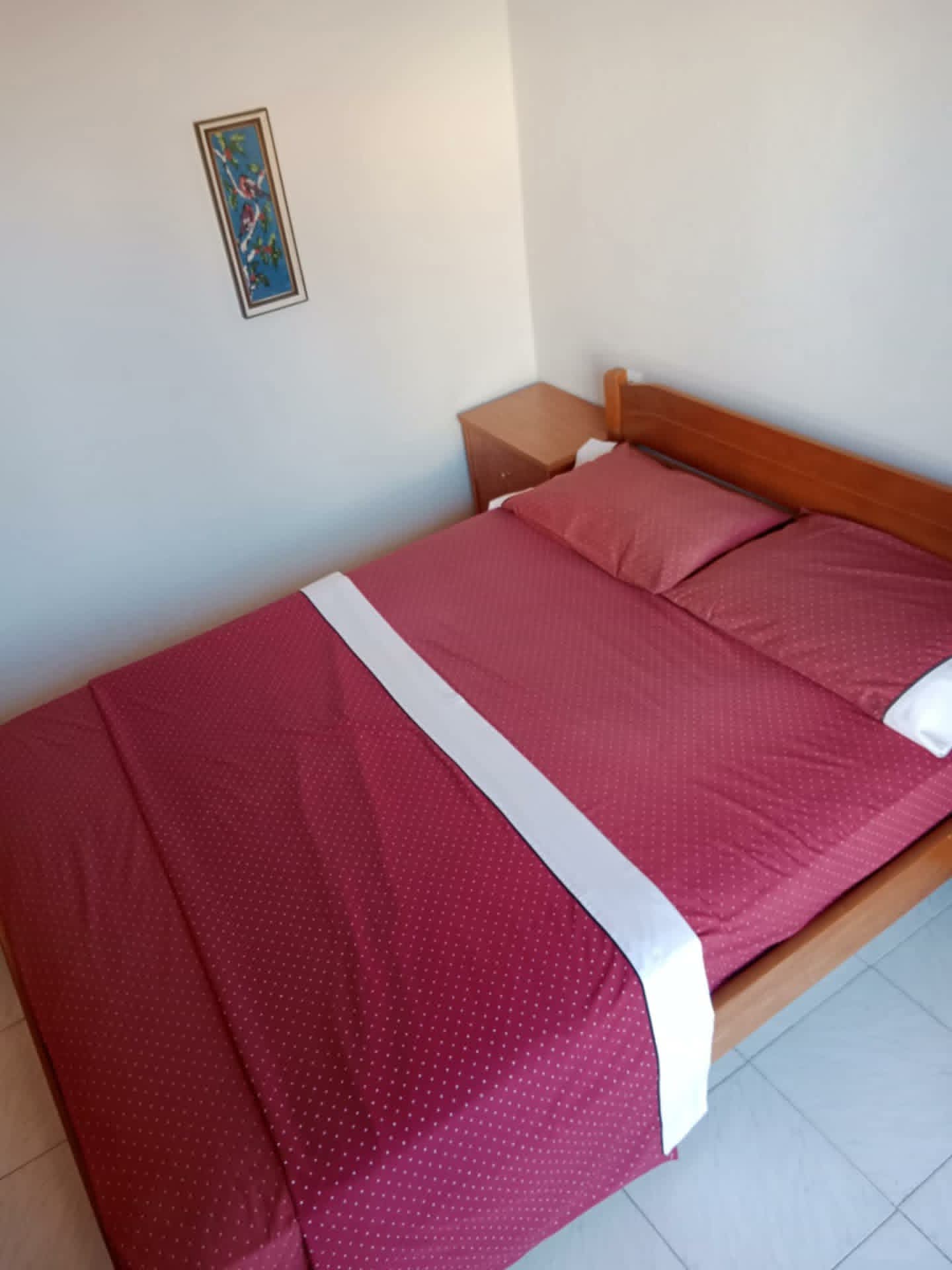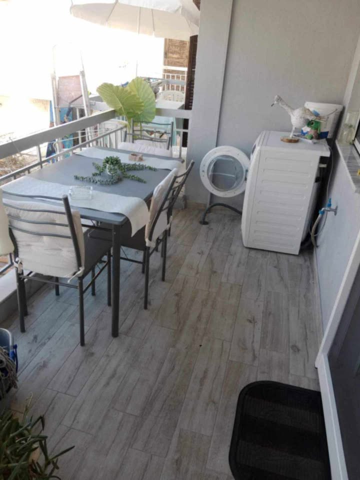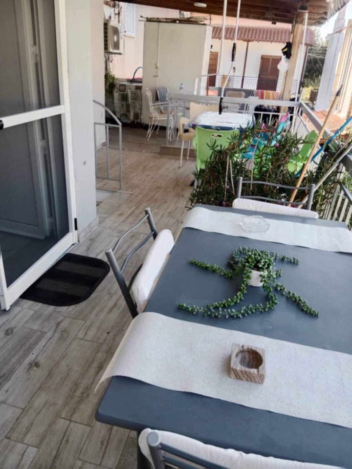 За 4-5 лица. 80 метри од плажа. Има еден брачен кревет во едната соба, плус една софа во другата соба. Можност за еден дополнителен кревет на спуштање . Опремена кујна за приготвување и послужување храна и пица. Клима и Wi-Fi се вклучени во цената. Станот се наоѓа на прв кат и има голема тераса напред и мала тераса позади.